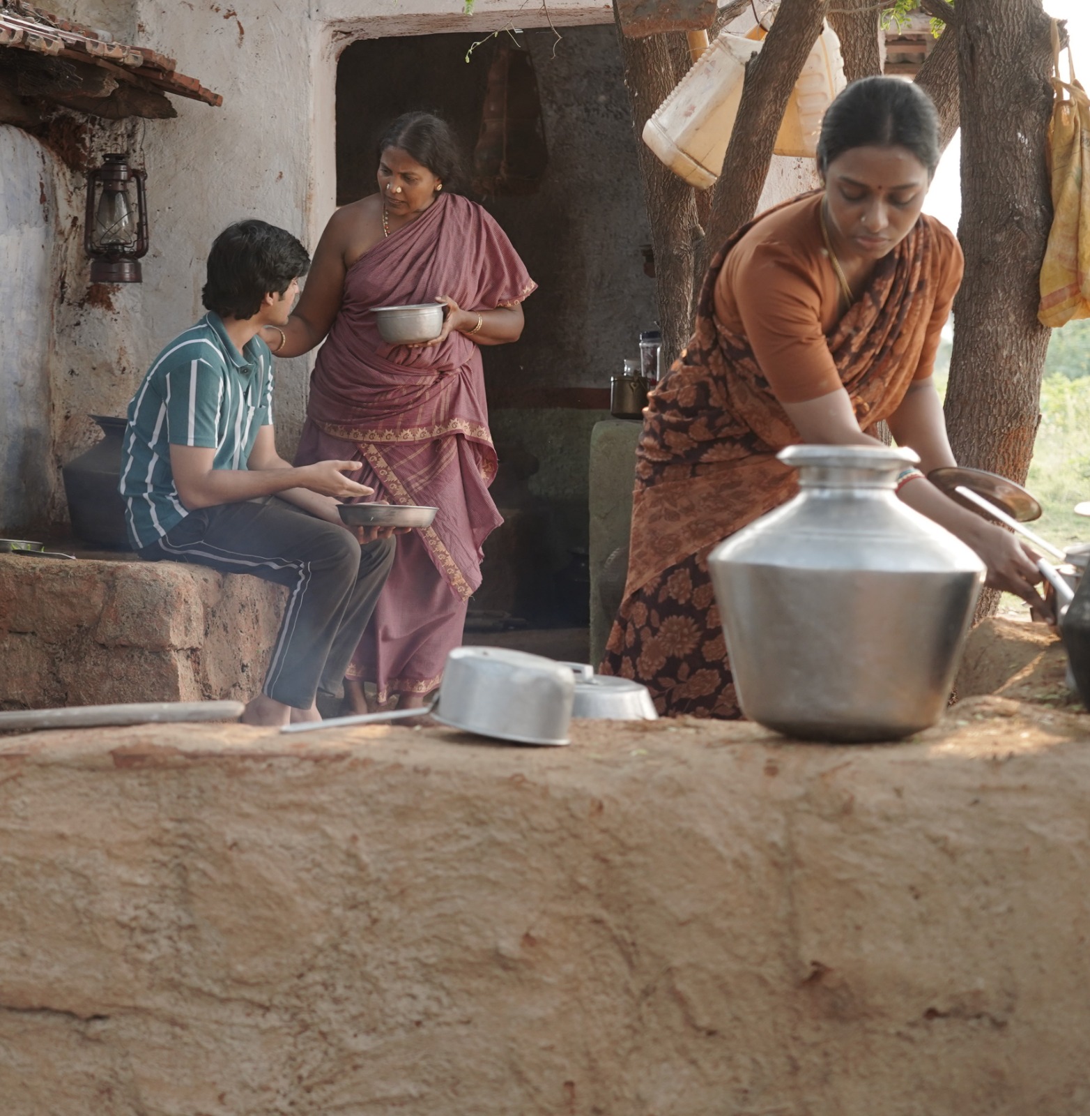 வீட்டில்  சச்சரவுகளைக் கண்டு கொள்ளாமல் மனதில் எதையும் வாங்கிக் கொள்ளாமல் மூத்த மகனாக வரும் பரணி நாதஸ்வரம் வாசித்துக் கொண்டிருக்கிறார். அவர் பிரச்சினைகளில் இருந்து தனக்கு விடுதலை அளிப்பது கலைதான் என்பதை உணர்த்துகிறார்.