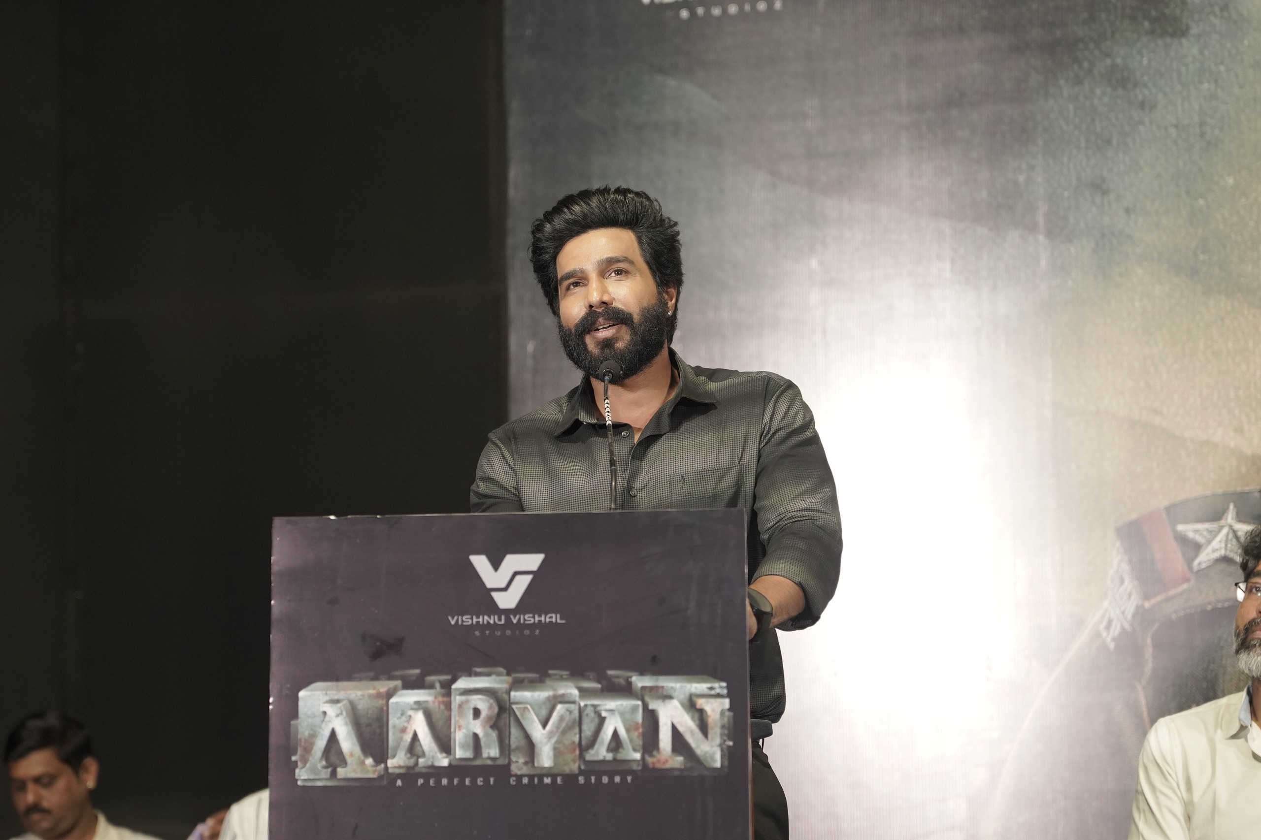 என் படங்கள் திரையரங்கத்தைத் தாண்டி ஓடிடியில் நல்ல வெற்றி பெறுகிறது. இது படத்திற்குப் படம் மாறுபடும். ஆர்யன் படமும் ஓடிடியில் நல்ல வரவேற்பைப் பெறும். தியேட்டரிலும் நல்ல வரவேற்பைப் பெற்றுள்ளது. என் திரை வாழ்க்கையில் மிகப்பெரிய ஓபனிங் இந்த படம் தான். இந்தப்படத்தில் எடிட்டிங் மிக முக்கியம் அதை சான் லோகேஷ் சிறப்பாக செய்தார். ஜிப்ரான் சார் கடைசியில் தான் வந்தார், இப்போது மாற்றிய க்ளைமாக்ஸுக்கு கூட மீண்டும் சிறப்பாக வேலை செய்து தந்தார். மானசா சௌத்திரி தந்த ஒத்துழைப்புக்கு நன்றி. நான் வேலை பார்த்ததில் என்னுடைய ஃபேவரைட் நடிகை ஷ்ரத்தா. மிக வித்தியாசமானவர். நிறைய சினிமா பற்றிப் பேசுவோம் அவருக்கு நன்றி. செல்வா சார் இப்படத்தில் நடிக்கப்போகிறார் என்பதே எனக்கு மிகுந்த மகிழ்ச்சியாக இருந்தது. அவர் நடிப்பு பிரமிப்பைத் தந்தது. சைக்கோவிற்கு இருக்கும் வரைமுறைகளை தன் நடிப்பால் உழைத்துள்ளார். நான் எதிர்பார்த்ததை விட 2000 மடங்கு சிறப்பான உழைப்பத் தந்துள்ளார். இயக்குநர்பிரவீனை இவ்வளவு காலம் காக்க வைத்தற்கு மன்னிப்பு கேட்டுக்கொள்கிறேன். அடுத்த படம் விரைவாகச் செய்ய வாழ்த்துக்கள். கட்டா குஸ்தி 2 விரைவில் வருகிறது. என் தம்பியுடன் ஒரு படம் செய்யவுள்ளேன், இயக்குநர் அருண்ராஜா காமராஜுடன் ஒரு படம் செய்கிறேன். அடுத்தடுத்து உங்களுக்குப் பிடித்த மாதிரி படங்கள் செய்வேன். அனைவருக்கும் நன்றி.