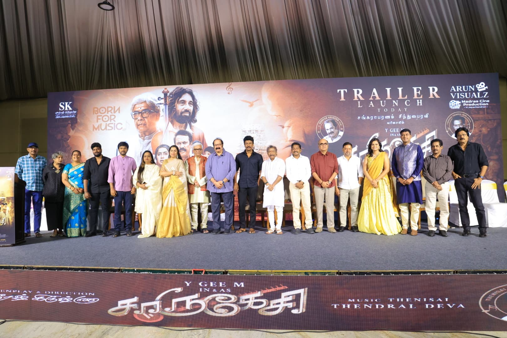 ‘சாருகேசி’ படத்தில் ஒய் ஜீ மகேந்திரன் முக்கிய கதாபாத்திரத்தில் நடிக்க சத்யராஜ், சமுத்திரக்கனி, சுஹாசினி மணிரத்னம், தலைவாசல் விஜய், ரம்யா பாண்டியன், ராஜ் ஐயப்பன், மதுவந்தி, லிவிங்ஸ்டன், ஜெயப்பிரகாஷ் மற்றும் பலர் நடித்துள்ளனர். அருண் ஆர் இந்த படத்தை தயாரிக்க, சுரேஷ் கிருஷ்ணா திரைக்கதை எழுதி இயக்கி உள்ளார். பாடல்கள் மற்றும் வசனம் பா. விஜய் எழுத, தேனிசை தென்றல் தேவா இசையமைத்துள்ளார். சென்னையில் பிரமாண்டமாக நடைபெற்ற சாருகேசி படத்தின் ட்ரெய்லர் வெளியீட்டு விழாவில் படத்தில் நடித்த நடிகர் மற்றும் நடிகைகள் அனைவரும் கலந்து கொண்டனர்.