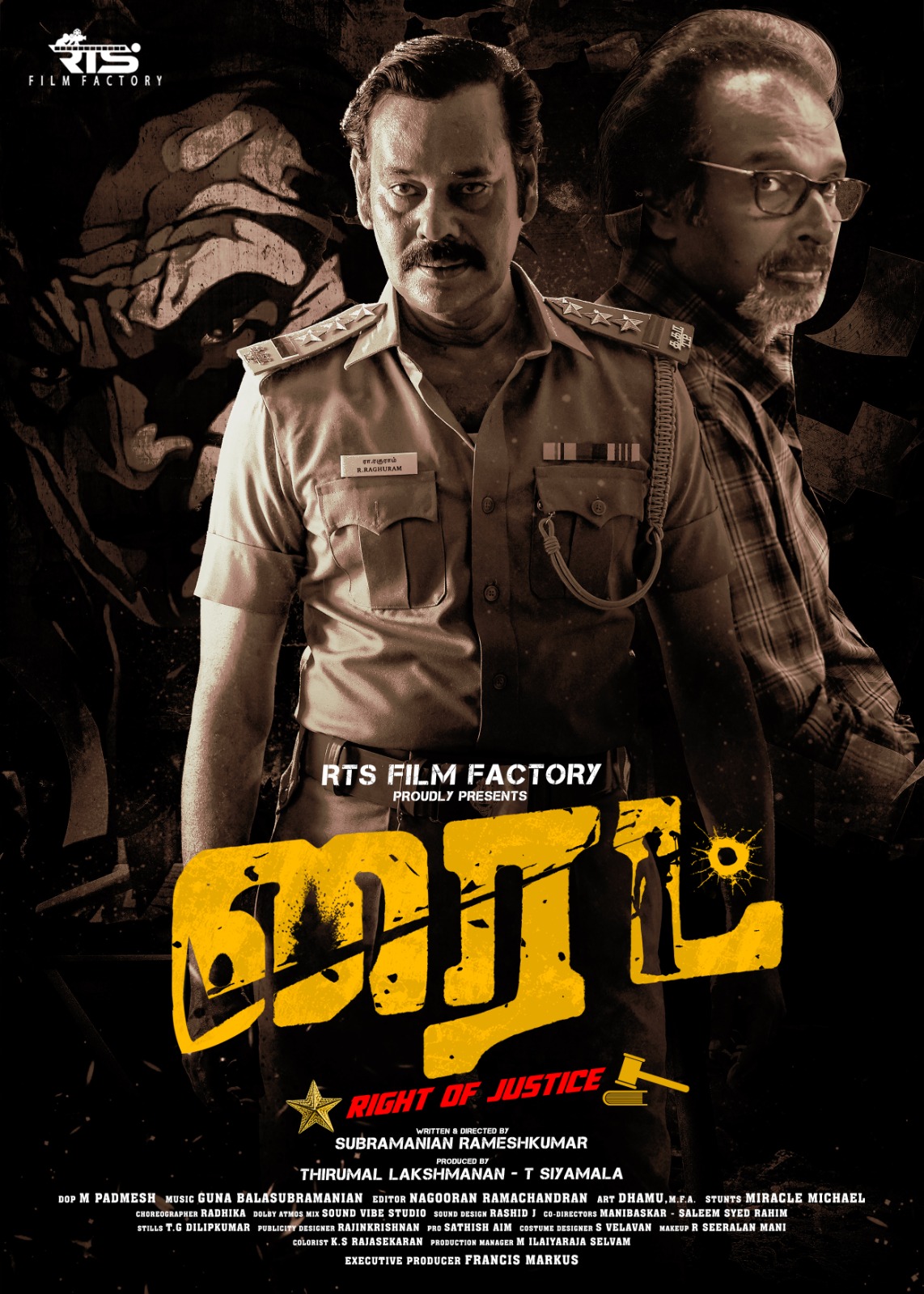 RTS Film Factory சார்பில், தயாரிப்பாளர்கள் திருமால் லட்சுமணன், ஷியாமளா தயாரிப்பில், அறிமுக இயக்குநர் சுப்ரமணியன் ரமேஷ்குமார் இயக்கத்தில், நட்டி, அருண் பாண்டியன் இணைந்து நடிக்கும், அசத்தலான கமர்ஷியல் திரில்லர் படமான “ரைட்” படத்தின் ஃபர்ஸ்ட் லுக்கை, மக்கள் செல்வன் விஜய் சேதுபதி வெளியிட்டுள்ளார்.