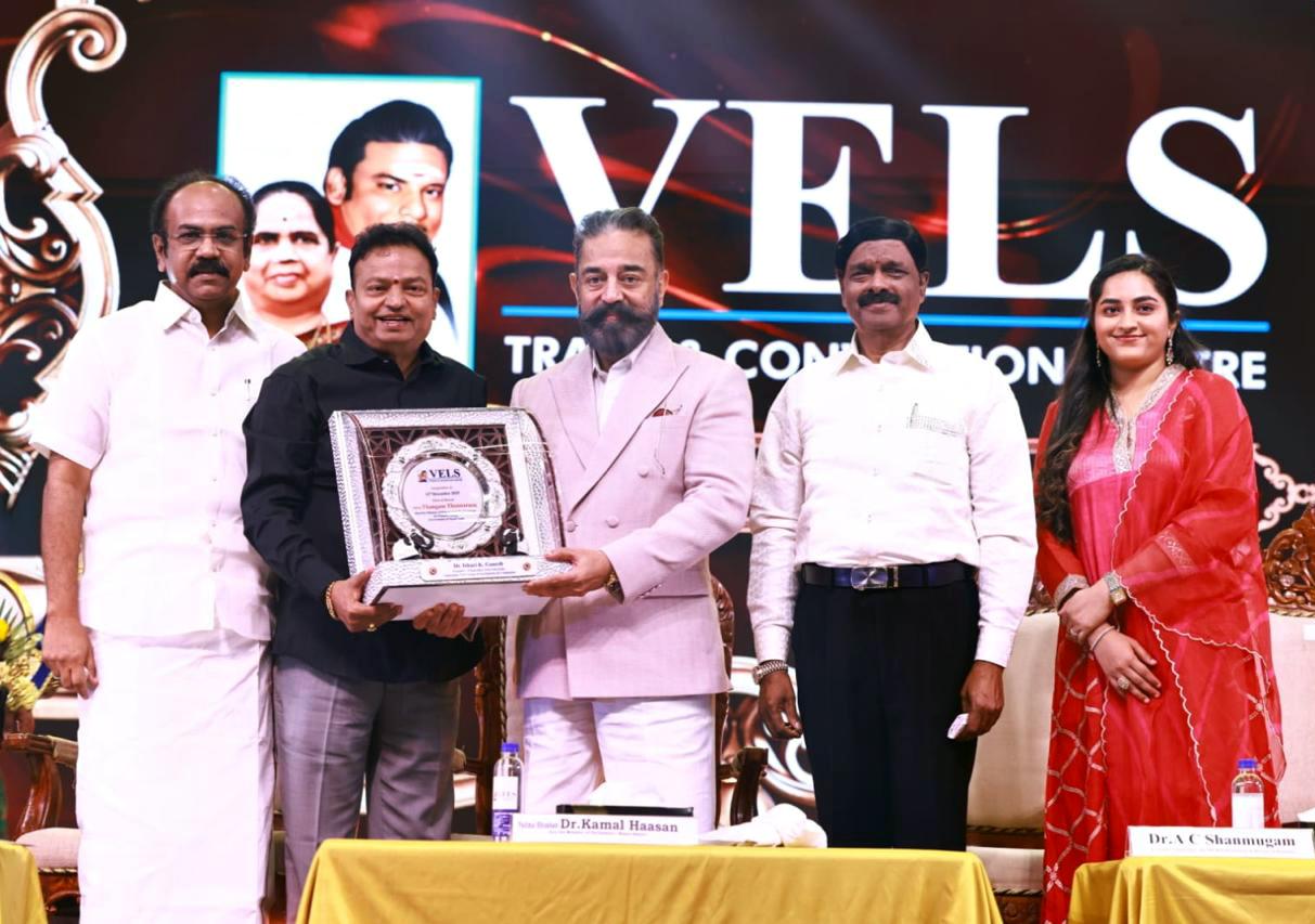 VELS கல்விக் குழுமம் மற்றும் நிறுவனங்களின் சார்பாக சென்னை, செம்பரம்பாக்கத்தில் VELS வர்த்தக மற்றும் மாநாட்டு மையம், VELS திரைப்பட நகரம் மற்றும் VELS திரையரங்குகளுக்கான திறப்பு விழா, கௌரவ விருந்தினராகக் கலந்து கொண்ட, பத்ம பூஷண் டாக்டர் கமல்ஹாசன், மாண்புமிகு நாடாளுமன்ற உறுப்பினர் (மாநிலங்களவை) அவர்களின் முன்னிலையில் மிகச் சிறப்பாக நடைபெற்றது.