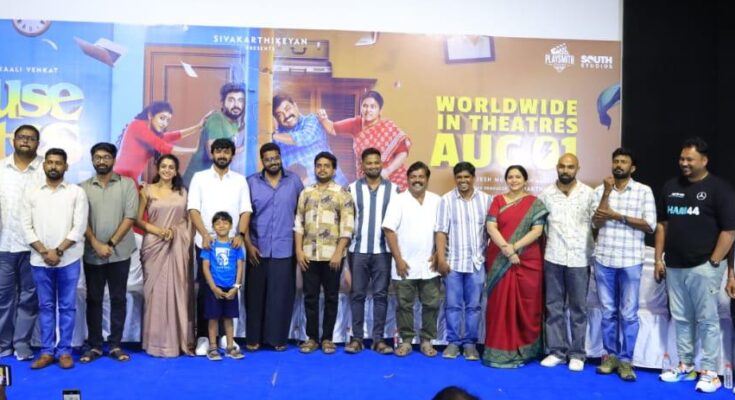 சிவகார்த்திகேயன் புரொடக்சன்ஸ் வழங்கும் இயக்குநர் ராஜவேல் இயக்கத்தில் நடிகர்கள் தர்ஷன், காளி வெங்கட், ஆர்ஷா பைஜூ உள்ளிட்ட பலர் நடிப்பில் உருவாகி இருக்கும் படம் ‘ஹவுஸ் மேட்ஸ்’. ஆகஸ்ட் 1 அன்று திரையரங்குகளில் வெளியாக இருக்கும் இந்தப் படத்தின் ப்ரீ ரிலீஸ் ஈவண்ட் நடைபெற்றது.